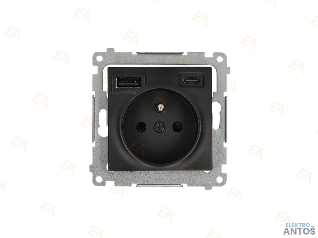 1-zásuvka s USB C+A Simon54 PREMIUM/NATURE SS 2,1A čierna DGZ1ZUSB2CA.01/49