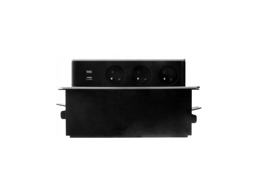3-zásuvka + USB-A+C do stola zapustená push-up 2m čierna 760206 OTIO