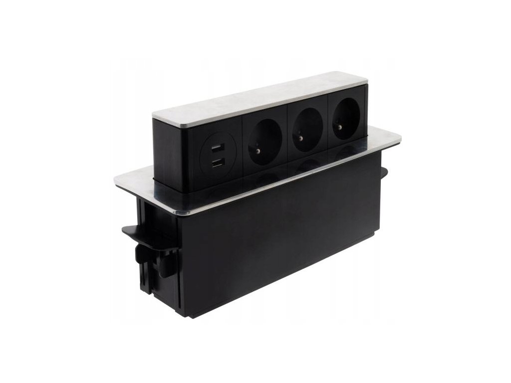 - Tento praktický zapustený/výsuvný modul značky Otio je určený pre montáž pod pracovnú dosku, v kuchyni, v kancelárii alebo na pracovnom stole, kde poskytuje elegantné riešenie napájania. S tromi zásuvkami 230 V so zemným kontaktom a dvomi USB výstupmi vám umožní pohodlne pripojiť počítače, monitory, nabíjačky, telefóny či iné elektrické zariadenia – a potom zasunúť, keď nie sú používané.