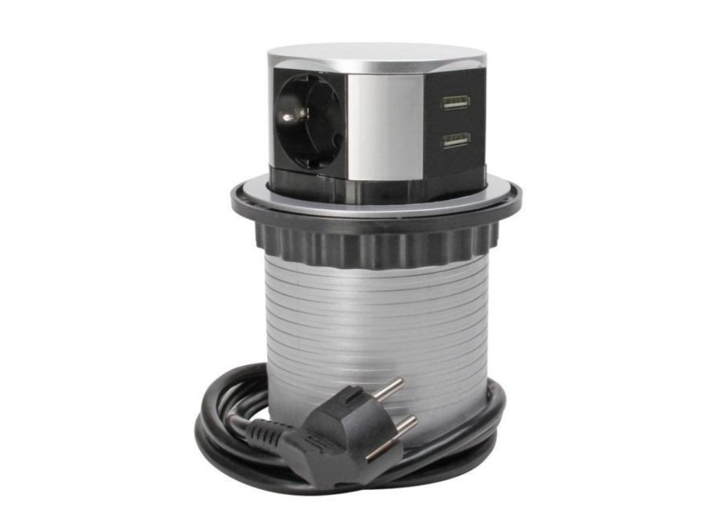 4-zásuvka do stola zapustená push-up 1,5m strieborná/čierna 760078 OTIO