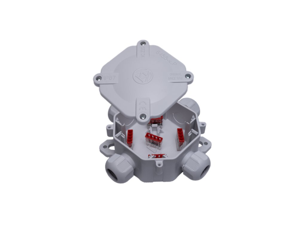 Pevná spojovacia skrinka, ktorá je ideálna aj pre vonkajšie použitie a vlhké miestnosti, veľmi stabilné prevedenie, remeselná kvalita. Bezpečné a jednoduché pripojenie
