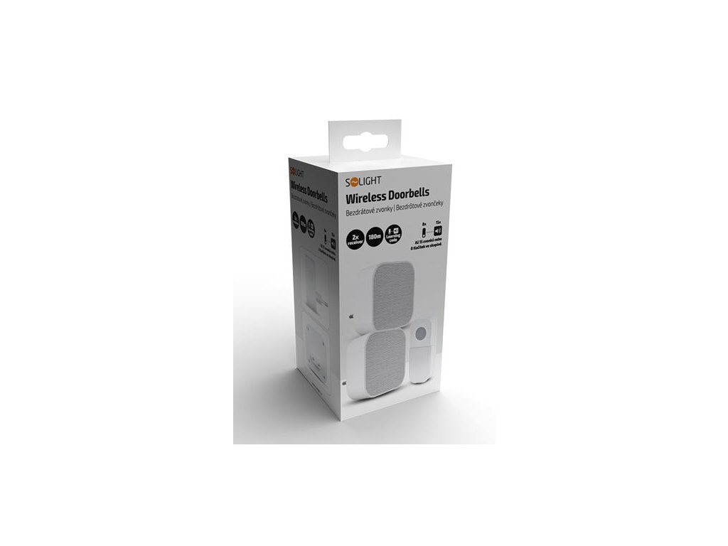Bezdrôtový 2x zvonček do zásuvky biely dosah 180m 1L74DZ SOLIGHT