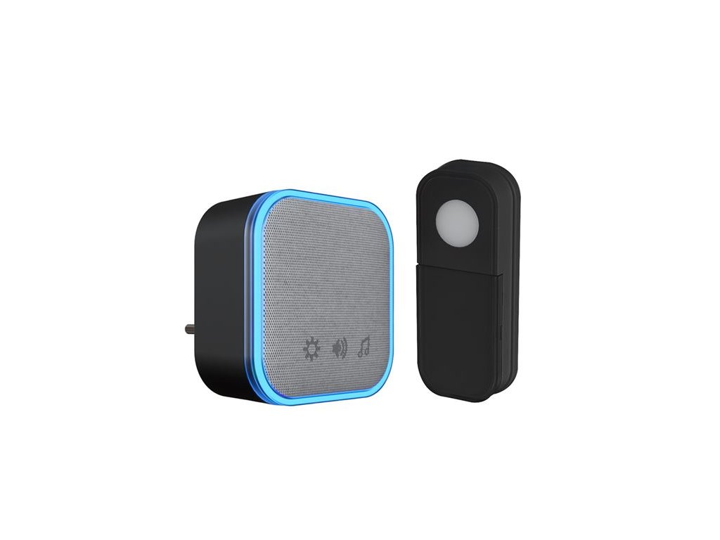 Zariadenie ponúka 36 melódií a štyri úrovne hlasitosti, ktoré si jednoducho nastavíte pomocou tlačidiel umiestnených priamo na prednej strane – ukrytých pod elegantným textilným povrchom. Po zazvonení sa aktivuje veľký LED rámik s modrým svetlom, ktorý zabezpečuje jasnú vizuálnu signalizáciu – vhodnú aj pre hlučné prostredie alebo osoby so zníženým sluchom.