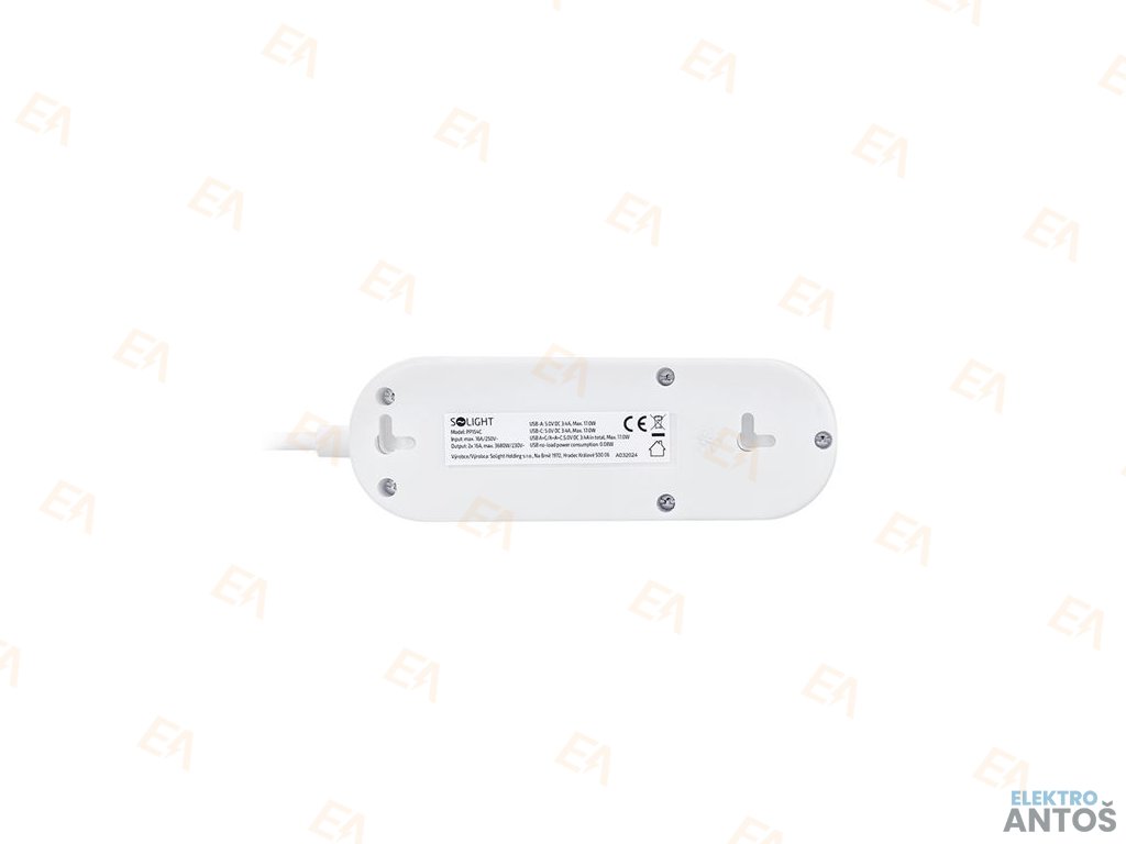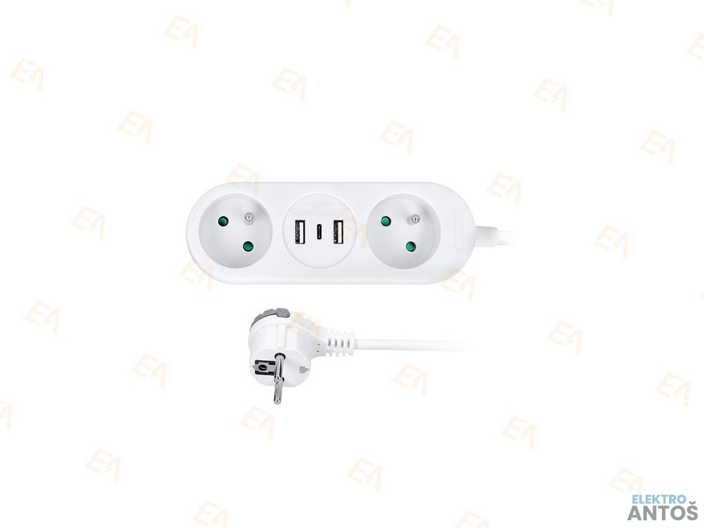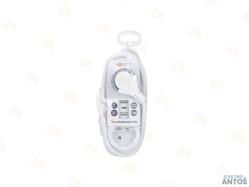 Cestovný predlžovací kábel 2-zásuvka + 2xUSB-A +1xUSB-C 1,5 metra biely PP154C SOLIGHT