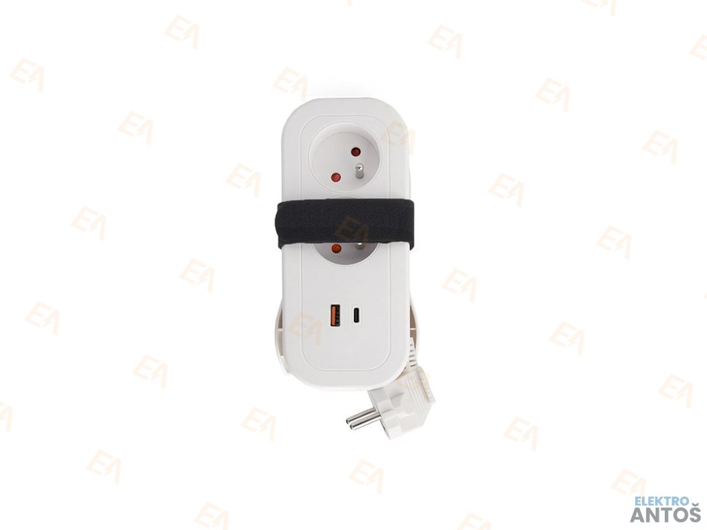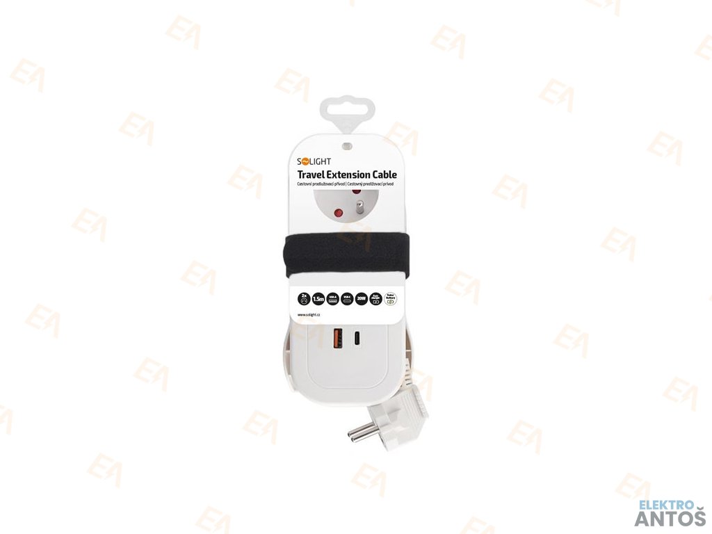 Cestovný predlžovací kábel 2-zásuvka + 2xUSB-A +1xUSB-C 1,5 metra biely PP155C-PD20 SOLIGHT