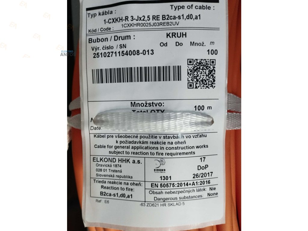 Kábel bezhalogénový 3x2,5 CXKH-R-J B2ca s1d0a1 oranžový ELKOND
