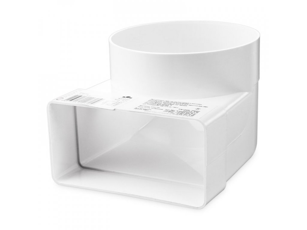 - Plastové uhlové prechody 822 sú určené k spájaniu okrúhlych potrubí s priemerom 125 mm a plochých potrubí s rozmerom 60 x 204 mm pod deväťdesiat stupňovým uhlom,