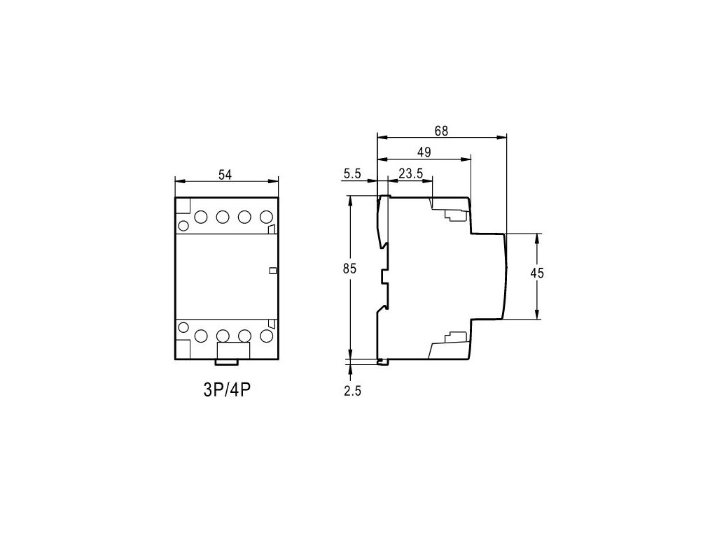 | SHK4-63 | 230 V AC | 63 | 54 | 14 kW | 5,5 kW | 24 kW | 9 kW | 1,55 W | 50A gG | 4 × NO |