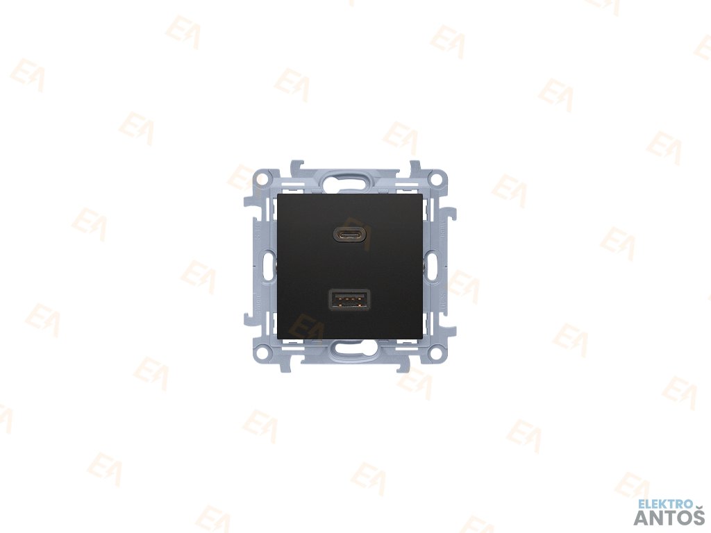 Nabíjačka dvojitá USB C+A 30W KONTAKT SIMON 10 SS čierna CEC2CAQ.01/49
