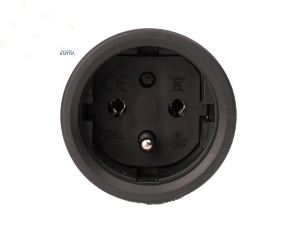 Priama zásuvka gumená IP20 16A/250V čierna PS16 SEZDK