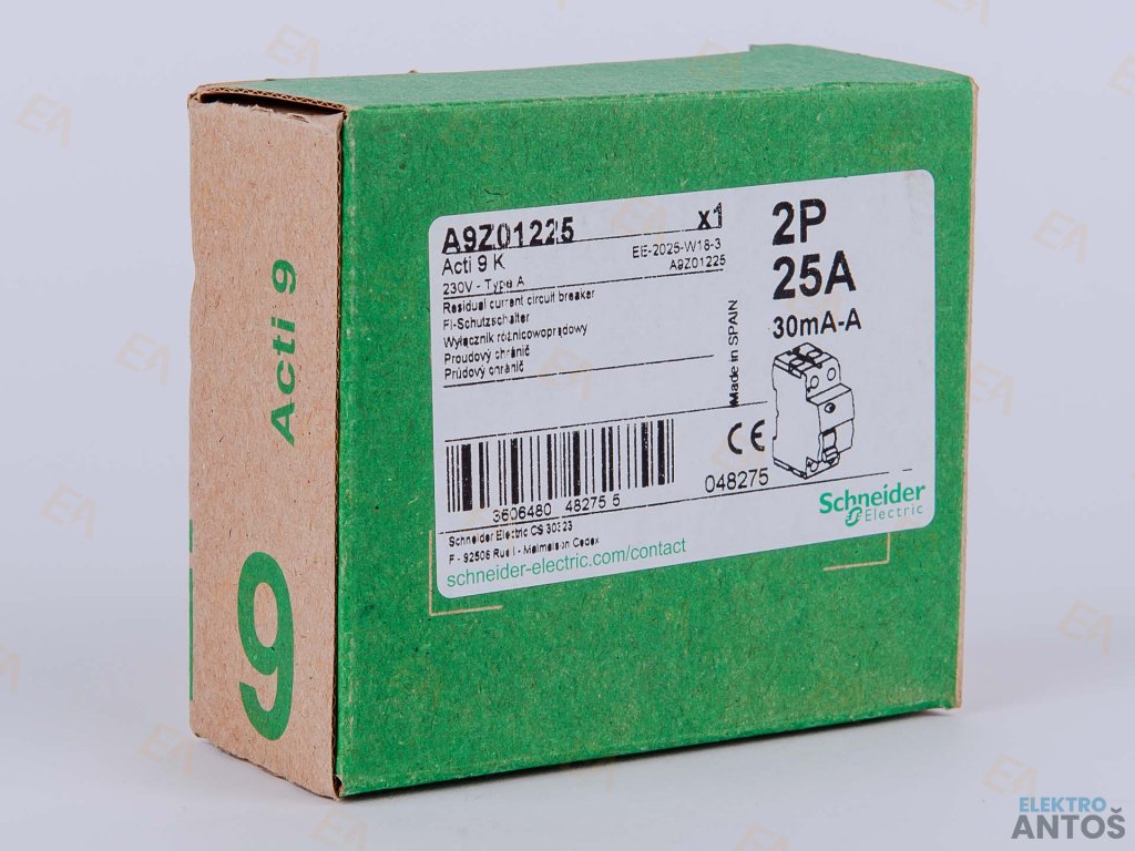 Prúdový chránič 2P 25A 30mA 6kA A A9Z01225 SCHNEIDER