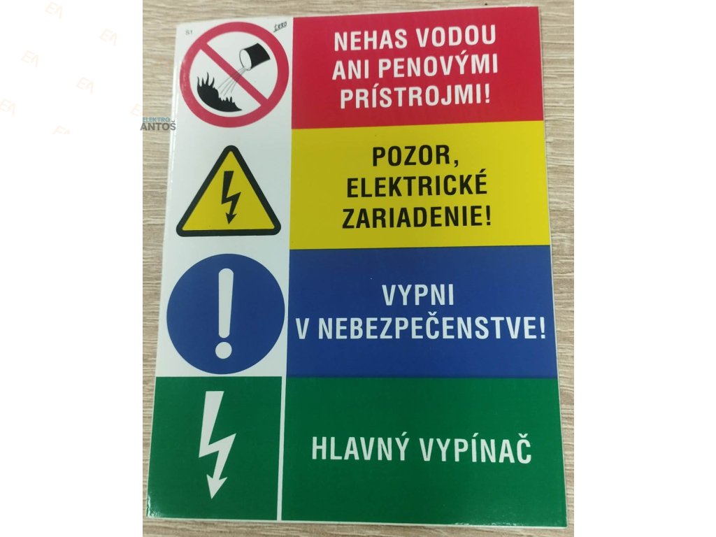 Bezpečnostná tabuľka varuje pred možným nebezpečenstvom a používa sa na označovanie elektrických zariadení, rozvodných a poistkových skríň.