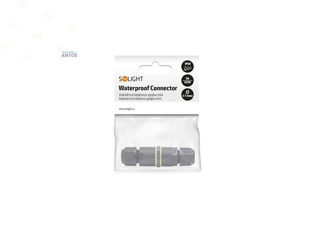 Kompaktný, vodotesný káblový konektor je ideálny na bezpečné pripojenie dvoj- alebo trojvodičových káblov vo vonkajšom aj vnútornom prostredí. Vďaka vysokému stupňu krytia IP68 je odolný voči vode a prachu a vhodný na krátkodobé ponorenie do hĺbky až 3 m (max. 48 hodín). Konektor zvládne napätie do 450 V AC a prúd do 9 A.