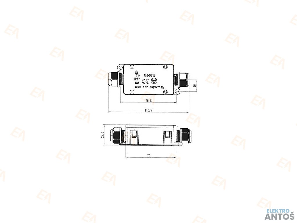 Vodeodolná káblová spojka 3x2,5mm² IP68 PL0525