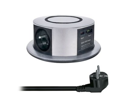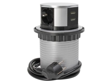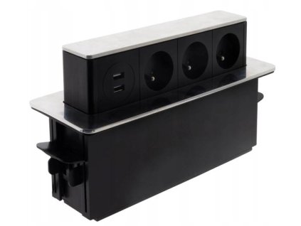 Výsuvná 3-zásuvková lišta s dvoma USB-A nabíjačkami pre písací stôl alebo kuchynskú pracovnú dosku.
