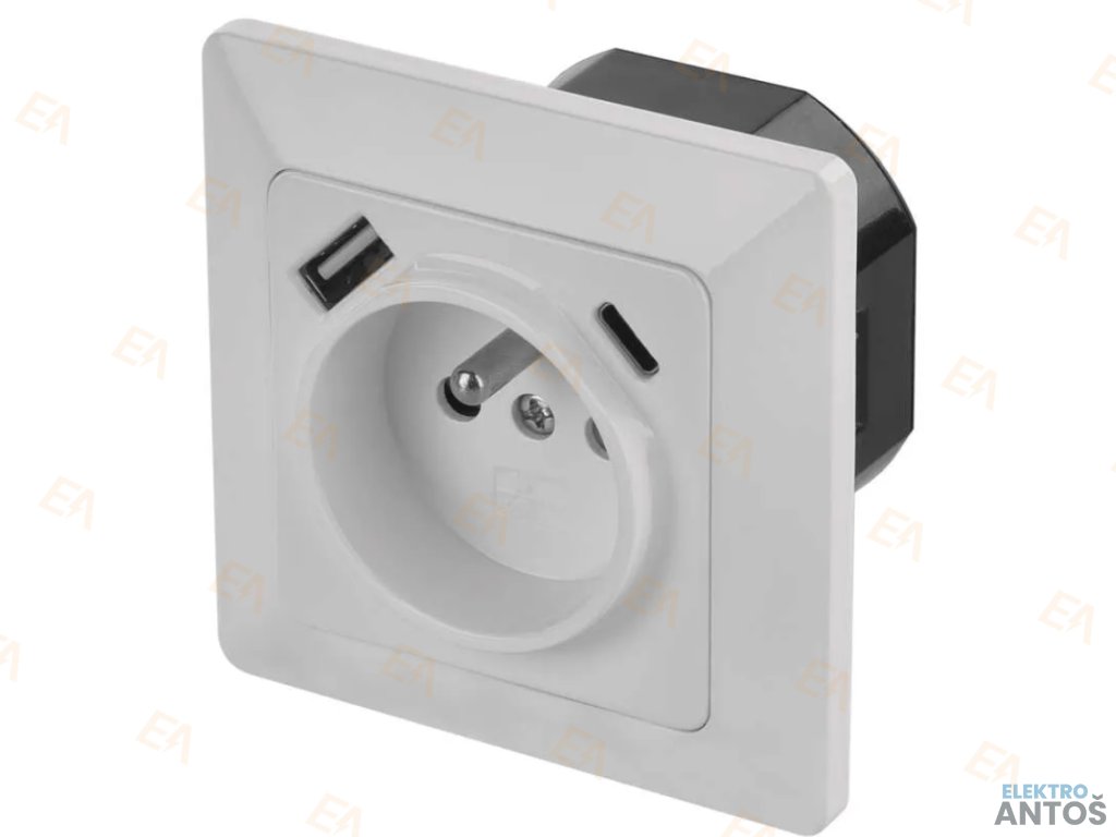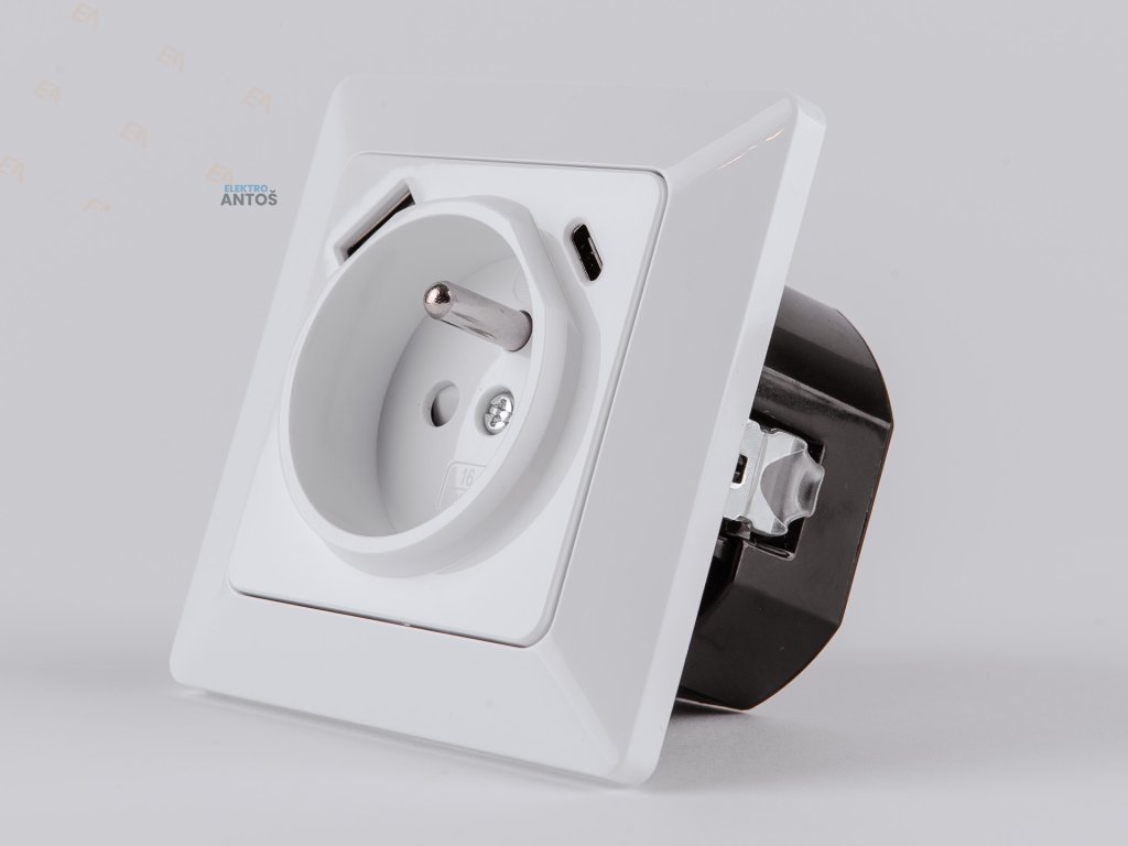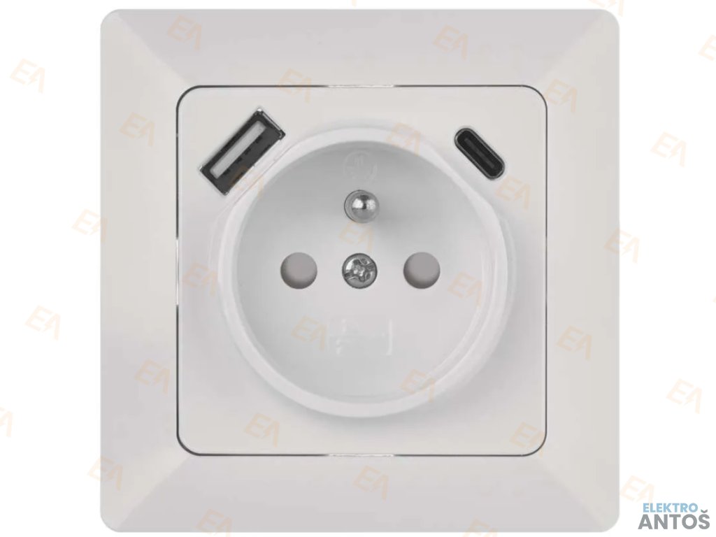 Kombinovaná zásuvka s ochranným kolíkom a integrovanými USB portami typu A a C pre rýchle nabíjanie podľa protokolu PD 3.0. Ideálne riešenie pre domácnosti, kancelárie aj verejné priestory, kde potrebujete nabíjať zariadenia bez adaptéra.