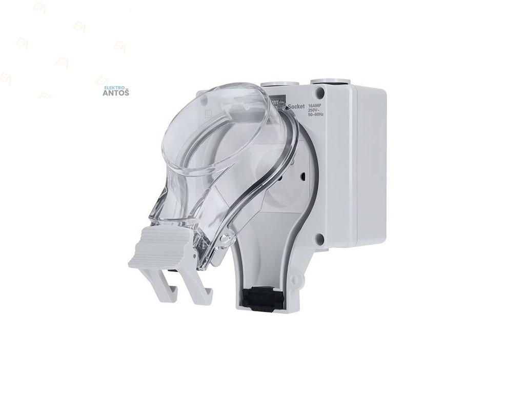 Priehľadné veko zásuvky je možné uzamknúť visiacim zámkom, čo chráni proti nechcenej manipulácii a zvyšuje bezpečnosť. Predĺžený kryt chráni časť kábla a zároveň slúži aj ako páka na ľahšie uzavretie veka. Gumové tesnenie a zátky zaisťujú dokonalé utesnenie proti vode a prachu. Odolnosť proti horúčave 850 ° C umožňuje inštalovať aj na horľavé materiály. Konštrukcia je navrhnutá tak, aby odolala intenzívnym klimatickým podmienkam, čím zaisťuje dlhodobú spoľahlivosť a bezpečnosť pri používaní.