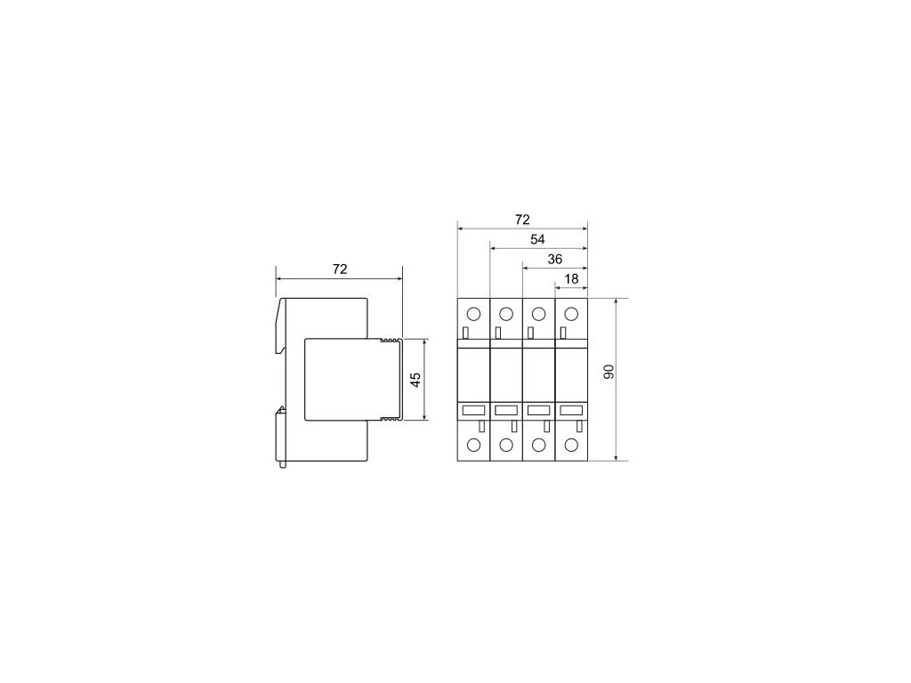 | ESPD1+2-12.5-3P | 275 V AC | 12,5 kA | 20 kA | 50 kA | ≤ 1,3 kV | TN-C | 54 |